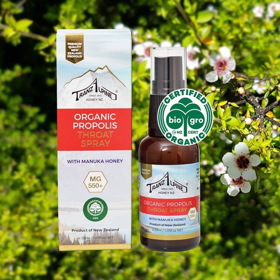 Sự kết hợp hoàn hảo giữa keo ong & mật ong Manuka đã giúp cho sản phẩm xịt keo ong TranzAlpineHoney Organic Propolis Throat Spray with Manuka Honey MG550+ trở thành sản phẩm chăm sóc sức khỏe được bình chọn hiệu quả và được các Bác sĩ khuyên nên có trong tủ thuốc gia đình.